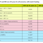 The effect of 50% grant funding is to make certain retrofit projects financially viable, mostly those improving an EPC D house to EPC C. This is because the capital cost of retrofitting D-C is c. £25k compared to almost £70k for EPC A+. Even here, though, the rates of return are under the 3% typical of a public sector type investment proposal.
